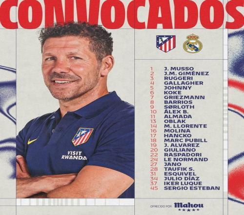 前鋒:格列茲曼、瑟洛特、巴埃納、蒂亞戈-阿爾馬達(dá)、胡利安-阿爾瓦雷斯、朱利亞諾-西蒙尼、拉斯帕多里、伊克爾-盧克、塞爾希奧-埃斯特萬
