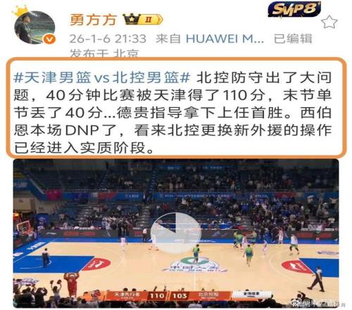 媒體人勇方方,在賽后對北控的防守提出質(zhì)疑,他在社媒發(fā)文講道。“北控防守出了大問題,40分鐘比賽被天津得了110分...德貴指導(dǎo)拿下上任首勝。西伯恩本場DNP了,看來北控更換新外援的操作已經(jīng)進(jìn)入實(shí)質(zhì)階段。 ”。