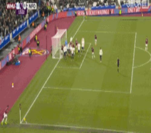 第13分鐘,西漢姆聯開出角球,穆里略解圍不慎自擺烏龍,西漢姆聯取得領先。