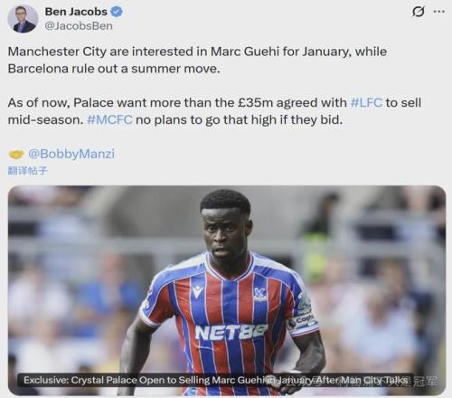 第二,從格拉斯納這次表態看,雖然愿意賣格伊,但不會賤賣。甚至有記者表示,水晶宮在冬窗對格伊的要價,反而還高于利物浦夏窗談好的3500萬英鎊,因為水晶宮說冬窗買格伊替代者的代價也加大了。這就有點過分了!如果是這樣,那不僅利物浦,曼城恐怕也不會當這個冤大頭,畢竟半年以后就免費了。