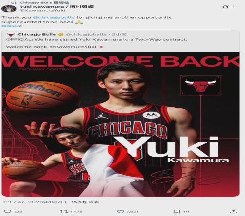 北京時(shí)間1月7日上午,芝加哥公牛官方宣布:球隊(duì)用雙向合同簽下日本后衛(wèi)河村勇輝。河村勇輝轉(zhuǎn)發(fā)并寫道:“感謝公牛再次給我機(jī)會(huì),非常興奮能夠回來。”為了給河村勇輝騰位置,今天公牛裁掉雙向合同球員特倫廷-弗勞爾斯。