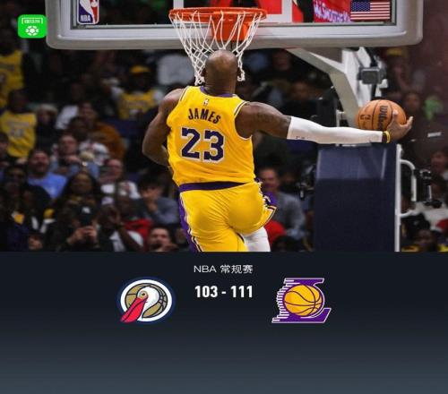 第四節鵜鶘特雷-墨菲拿下8分,湖人詹姆斯拿下10分,最終鵜鶘103-111不敵湖人