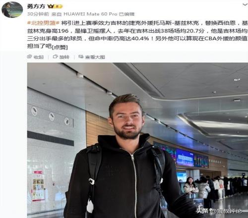 此外,北控男籃將引進(jìn)上賽季效力吉林的捷克外援托馬斯-基茲林克,替換西伯恩。