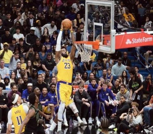 湖人上半場51比54落后3分。第三節比賽,詹姆斯開啟了瘋狂助攻模式,前5分鐘,詹姆斯連續送出4次助攻,艾頓兩次籃下吃餅得分,斯馬特兩次投籃得分,幫助湖人65比62反超鵜鶘。詹姆斯在第三節中段被換下場休息,在第四節還剩2分08秒時替換上場,這時候湖人落后7分。詹姆斯上來之后制造三分球犯規,三罰全中,隨后他搶斷普爾快攻,玩起了大風車劈扣。湖人仍然落后7分進入末節,詹姆斯在場上帶隊反撲。他投進一記三分球,助攻范德比爾特籃下吃餅得分,接著自己再進一記三分球,湖人打出8比0的第四節開局,一舉反超了鵜鶘。詹姆斯在這一節的末尾兩次上籃得分,末節貢獻了10分。