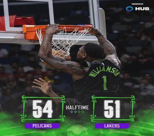 本賽季至今,湖人替補場均得分只有25.3分,全聯盟墊底。錫安上半場9中4,拿到9分3籃板5助攻。鵜鶘最猛的是特雷-墨菲,上半場9中5砍下14分4籃板。第三節墨菲開啟暴走模式,單節12中8狂砍20分,生涯第二次單節20+!