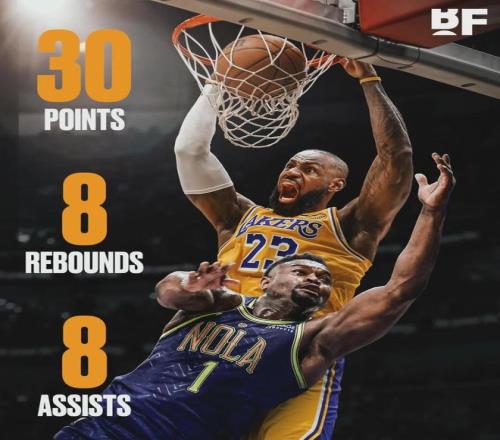 詹姆斯30分8板8助2斷、東契奇30分2板10助2斷,兩人合砍60分10籃板18助攻。鵜鶘慘遭8連敗,墨菲42分5板3助、錫安15分4板5助3失誤、奎因10分13板8助2斷4失誤。墨菲打破生涯得分紀錄,他也是鵜鶘交易價值最高的球員。