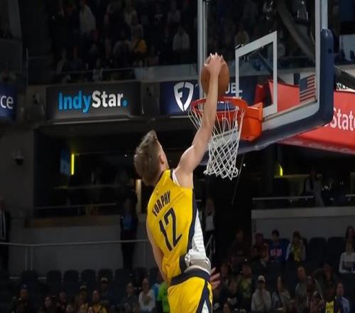 次節(jié)回來(lái),小莫布利單點(diǎn)波特打成2+1,湯姆林三分跳投命中后,梅里爾倒地再助攻湯姆林雙手炸扣后又進(jìn)三分,騎士反超比分。內(nèi)史密斯三分急停跳投命中,穩(wěn)住局勢(shì),西亞卡姆搶斷迪恩韋德后反擊挑戰(zhàn)再中,步行者回敬一波5-0再拿回領(lǐng)先優(yōu)勢(shì),打停騎士。加蘭連續(xù)翻身跳投命中,一人連拿6分扳平比分,杰-胡夫積極拼搶前場(chǎng)板,籃下擰著身子高難度反扣得手,下一回合空切籃下接球又完成360度轉(zhuǎn)身單臂劈扣,真是變著花樣扣?加蘭連續(xù)高難度出手不中,杰-胡夫準(zhǔn)壓哨三分再中,半場(chǎng)戰(zhàn)罷,步行者60-53領(lǐng)先騎士7分。