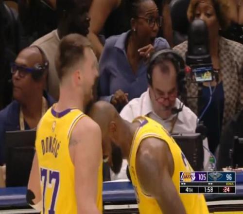 談到第四節末段自己在即將出界的情況下投進一記匪夷所思的壓哨球后,詹姆斯用頭撞了他一下慶祝時,東契奇笑著說道:“我夸他給我做了一個很棒的掩護。”