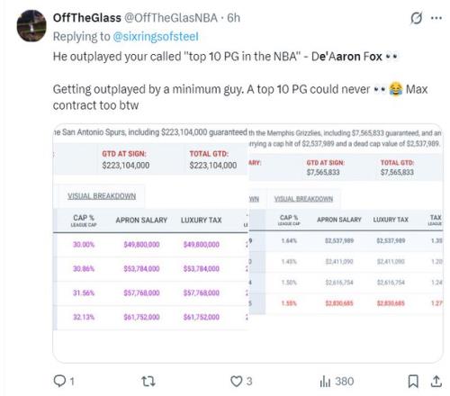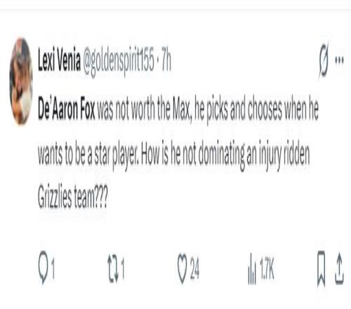 美球迷:福克斯根本不配那份頂薪合同,他總是隨意的將自己稱之為明星球員,結果帶隊打不過傷兵滿營的灰熊。