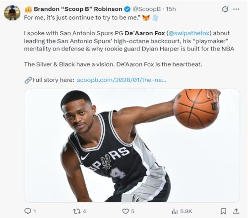 在這場比賽之前,??怂箘倓偨邮芰薙coop B的專訪,??怂贡硎驹隈R刺這支充滿后場球員的球隊打球最主要的是做自己,在防守端也要有組織者的心態,會幫助哈珀更快的適應NBA的節奏?!窘Y果福克斯就是用18中4來做自己】