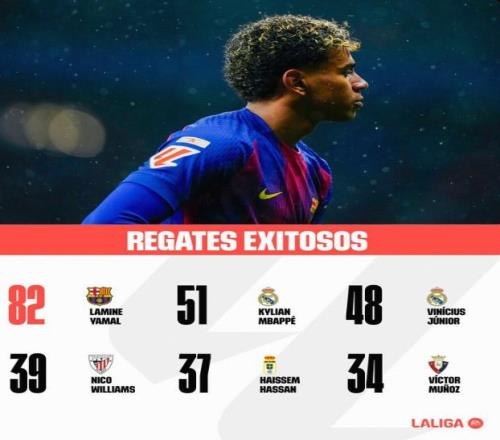西甲官方曬本賽季成功過(guò)人榜:亞馬爾高居榜首,姆巴佩次席 懂球帝 2026-01-07 19:16:03 北京時(shí)間1月7日,西甲官方曬本賽季成功過(guò)人榜:亞馬爾高居榜首,姆巴佩位居次席。具體排名1 亞馬爾(巴薩)82次2 姆巴佩(皇馬)51次3 維尼修斯(皇馬)48次4 尼科(畢爾巴鄂競(jìng)技)39次5 哈桑(皇家?jiàn)W維耶多)37次6 穆尼奧斯(奧薩蘇納)34次西甲免費(fèi)觀看_亞馬爾免費(fèi)觀看_姆巴佩免費(fèi)觀看_西甲高清在線(xiàn)_亞馬爾高清在線(xiàn)_姆巴佩高清在線(xiàn) 西甲 亞馬爾 姆巴佩 穆尼奧斯 皇家馬德里 奧薩蘇納隊(duì) 基利安·麥巴比 畢爾巴鄂競(jìng)技俱樂(lè)部 上一篇: 馬卡:西超杯半決賽是“致命”德比,結(jié)果將決定兩隊(duì)賽季走向 下一篇: 阿斯:西班牙人后衛(wèi)羅梅羅對(duì)陣巴薩發(fā)揮出色,吸引了巴薩關(guān)注