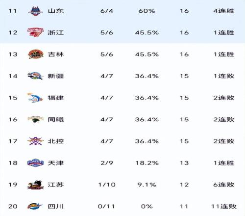 在廣東隊、廣廈隊、北京隊組成爭冠第一集團的時候,上海隊突然爆發(fā),憑借一波7連勝戰(zhàn)績,坐穩(wěn)積分榜前四,并且9勝2負追平以上三支強隊。
