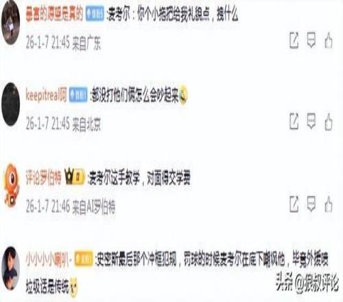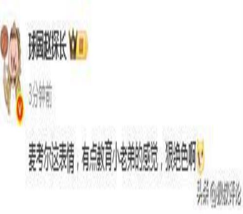 媒體人趙探長(zhǎng)發(fā)文點(diǎn)評(píng):“麥考爾這表情,有點(diǎn)教育小老弟的感覺,狠絕色啊”。