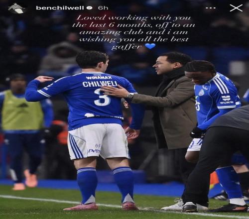 奇爾韋爾發(fā)文寫(xiě)道:“過(guò)去6個(gè)月和你共事的時(shí)光很棒,祝你前往新的出色俱樂(lè)部一切順利,教練。”