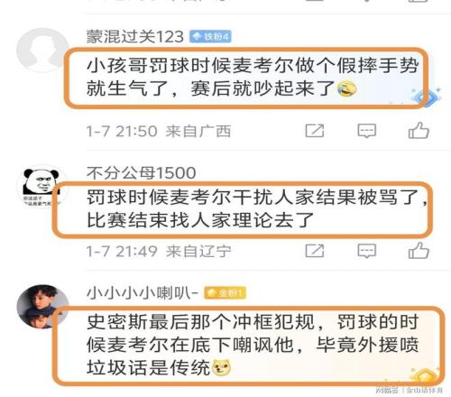 有幾位現場球迷,賽后也道出真相。“小孩哥罰球時候麥考爾做個假摔手勢就生氣了,賽后就吵起來了”;“罰球時候麥考爾干擾人家結果被罵了,比賽結束找人家理論去了”;“史密斯最后那個沖框犯規,罰球的時候麥考爾在底下嘲諷他,畢竟外援噴垃圾話是傳統。”。