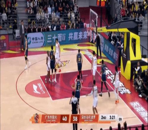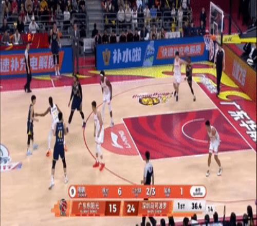 第一節1分53秒,廣東發底線球,薩林杰迅速傳給了空位的王洪澤,但王洪澤在接球后完全沒有透露的意向,想都沒想就直接把球轉移給徐杰。