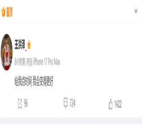 在本場比賽結束后,一向低調的王洪澤在賽后發了這么一條動態:給我點時間,我會變得更好。評論區下方有大量球迷向他表達了鼓勵,王洪澤幾乎就不怎么玩社交媒體,這次他之所以會罕見的向球迷喊話,主要還是他近期的表現實在太糟糕了,有點辜負教練、隊友、球迷的期待。