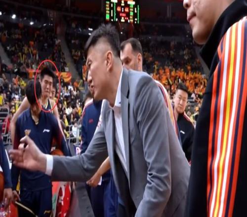 第一節最后半分鐘,王洪澤弧頂持球想給吊球給徐杰,但出現了傳球失誤,一個回合后,王洪澤立馬被杜鋒換下。