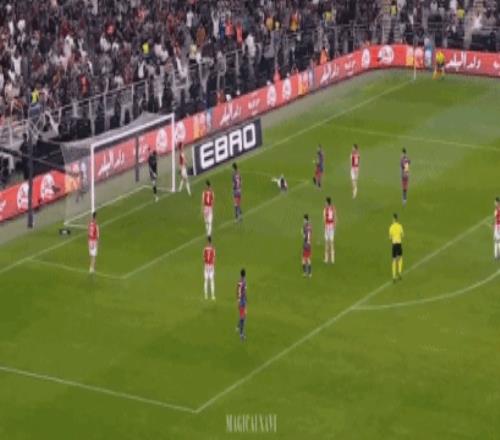 這是巴薩的反擊,費爾明送上傳球,禁區右肋,巴德吉閃轉騰挪,連續變向、急轉、假動作,拉開角度之后右腳抽射,皮球從烏奈-西蒙腋下鉆入網窩。