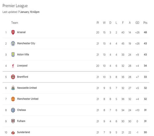 積分榜上,曼聯(lián)確實把握住切爾西輸球的機會超越了對手,可惜布倫特福德后來居上,占據(jù)了積分榜第五的位置,他們本輪3-0大勝桑德蘭。紐卡斯爾聯(lián)也依靠凈勝球反超紅魔,現(xiàn)在弗萊徹的球隊落到了第7名。