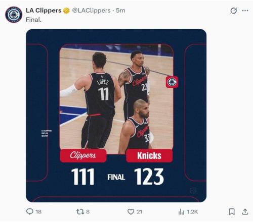 北京時(shí)間1月8日,NBA常規(guī)賽,快船以111-123慘敗尼克斯。這場(chǎng)比賽上半場(chǎng)快船掌控局勢(shì),第三節(jié)快船的體能出現(xiàn)問(wèn)題防守端是漏洞百出尼克斯趁勢(shì)反超,末節(jié)快船的防守依舊沒(méi)有起色加上兩個(gè)核心連連打鐵,最終快船被尼克斯逆轉(zhuǎn),哈登17中6手感不佳。