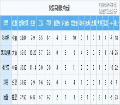 萊昂納德25分3板4助3斷、哈登23分3板9助、祖巴茨22分11板2助2帽、科林斯18分10板、鄧恩7分4板1助、米勒6分5板1助、洛佩斯6分、巴圖姆3分1板1助、尼德豪澤1分2板、桑德斯1板3助