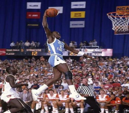在NBA,每支球隊(duì)都會有一個核心,他們會圍繞這個核心來布置戰(zhàn)術(shù),同時這位球員到最后時刻會擁有絕大部分的球權(quán)。但在NCAA這個聯(lián)賽,球星的主義很少會在比賽中出現(xiàn),他們更依賴團(tuán)隊(duì)籃球,通過許多大量配合來取得比賽的勝利。這時就會讓全隊(duì)的比分更加接近,數(shù)據(jù)特別出色的球員也會少之又少。特別是在迪恩.史密斯教導(dǎo)下,在籃球名校北卡嚴(yán)格的學(xué)院派風(fēng)格下,喬丹絕不會越權(quán)亂打,他只會不斷雕琢自己。花費(fèi)大量時間來訓(xùn)練處理球的技術(shù)。
