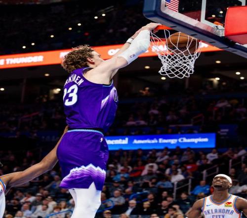 末節爵士多點開花,打出14-2的進攻高潮,從落后4分到105-97領先8分。霍姆格倫連拿5分,亞歷山大突破打進,雷霆追到106-107只差1分。馬爾卡寧打板命中,留給雷霆3秒鐘時間。亞歷山大壓哨中距離穩穩命中,將比賽拖入到加時。