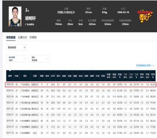 如此數據,可以說,胡明軒已經來到了職業生涯的低谷期,場均8.1分,更是創造了其近7個賽季的新低了。