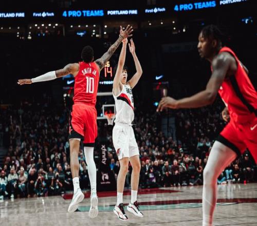 兩隊比分交替上升,后半段杜蘭特再中三分球,阿夫迪亞又火力全開,亞當斯連續補籃不中,克林根暴扣+夏普強攻打3分,烏度卡吃到技犯后,克林根續上三分球,半場結束時,開拓者57-47領先火箭。楊瀚森比賽節奏不錯,能開始閱讀比賽,跟上球隊的體系了。進入下半場,杜蘭特跳投+阿門連續上籃,亞當斯強硬補籃,火箭一路追到只差1分。克林根補籃止血后,阿夫迪亞繼續強攻,克林根在亞當斯頭上完成暴扣,杜蘭特和芬尼史密斯下三分雨回應。中段楊瀚森被換上,卡馬拉連續上籃+阿夫迪亞轟三分。