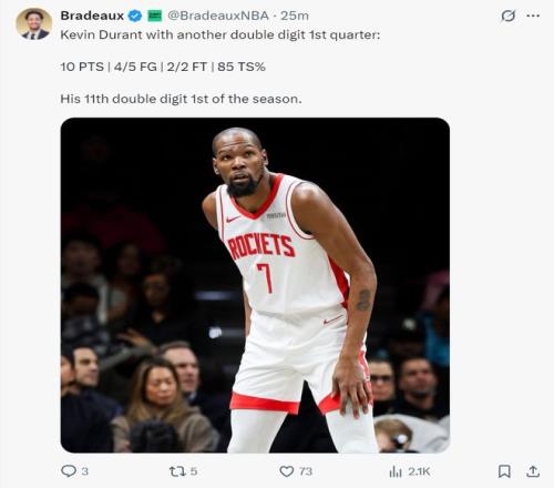 這是本賽季第二次遇上開拓者,烏度卡深知開拓者的特點是防守反擊,但因為缺少了一號位與申京球隊的運轉球本就是弱點,杜蘭特首節5中4,罰球2中2拿到10分1籃板已經非常高效,但伴隨2次失誤。