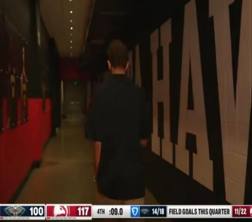 沒有等到比賽結束,特雷-楊和隊友以及場邊的觀眾一一告別,隨后轉身走向了球員通道。與球迷擊掌告別,成為了他作為老鷹球員留在這片主場的最后一個背影。最后轉播方甚至連比賽也不播了,鏡頭鎖定在球員通道內的特雷-楊。