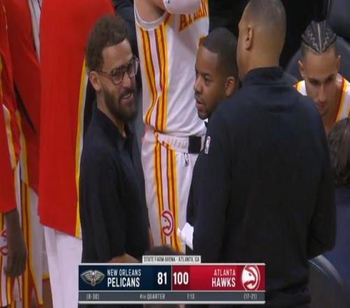今天奇才和老鷹都有比賽,奇才結束的稍早,交易被曝出的時候已經打完了比賽。而老鷹還在和鵜鶘交戰,特雷-楊就坐在板凳席上。聽到了自己被交易的消息,特雷-楊先是起身回到更衣室,隨后又回到了板凳席。
