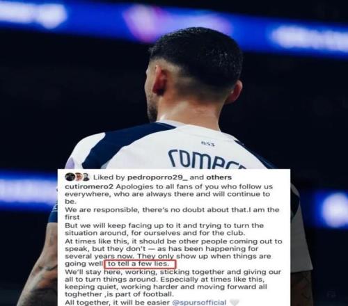 羅梅羅并非唯一表達(dá)不滿的熱刺球員。兩名隊(duì)友在帖子下留言支持。他的防線搭檔波羅寫道:“阿門。繼續(xù)戰(zhàn)斗,兄弟。我們還有很多仗要打。”前鋒理查利森則留下了一個(gè)雙手合十的表情符號(hào),顯然也認(rèn)同這番話。