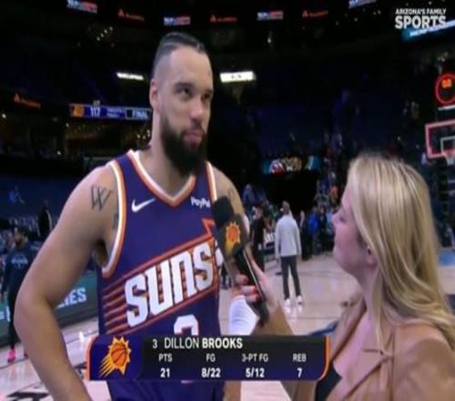 本場比賽是太陽前鋒狄龍-布魯克斯重返孟菲斯面對老東家的一戰(zhàn),賽后接受采訪時(shí),他透露了一個(gè)在比賽中的趣聞,狄龍說道:“小賈倫說我丑,但實(shí)際上他比我還丑。”
