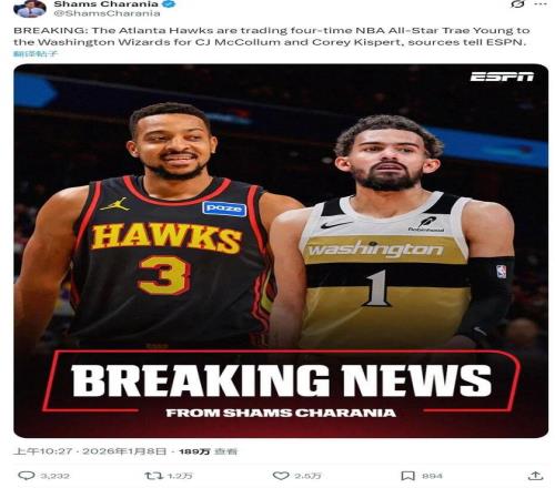 誰能想到,前天還在老鷹管理層辦公室里主動攤牌的特雷楊,轉眼之間就換球衣了;更戲劇的是,在交易官宣一刻,他本人還坐在老鷹替補席上。