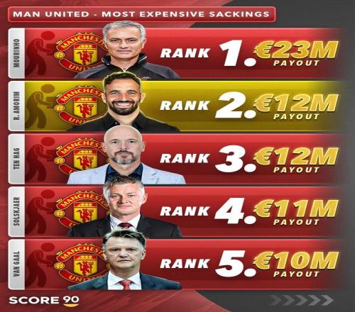 近日,Score90列出了曼聯(lián)歷任主帥解約賠償金排行榜,穆里尼奧的解雇費(fèi)用位列第一,達(dá)到2300萬歐,而阿莫林與滕哈格以1200萬歐并列其后。
