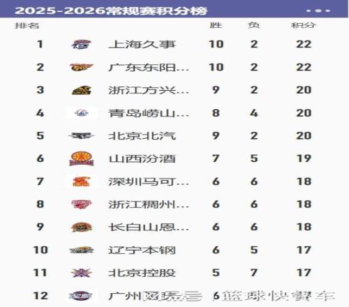 附:CBA積分榜最新排名