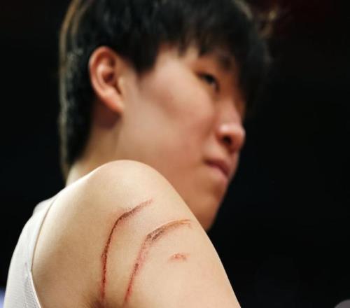 楊瀚森整體表現也沒有讓人失望,沒有畏畏縮縮,反而各種肉搏,甚至手臂都被抓出血痕,不得不說亞當斯太狠!