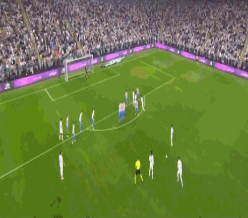 第2分鐘,世界波!巴爾韋德任意球直接轟入死角,皇馬1-0
