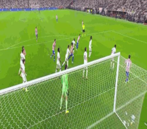 第84分鐘,格列茲曼凌空側鉤射門,庫爾圖瓦將球撲出