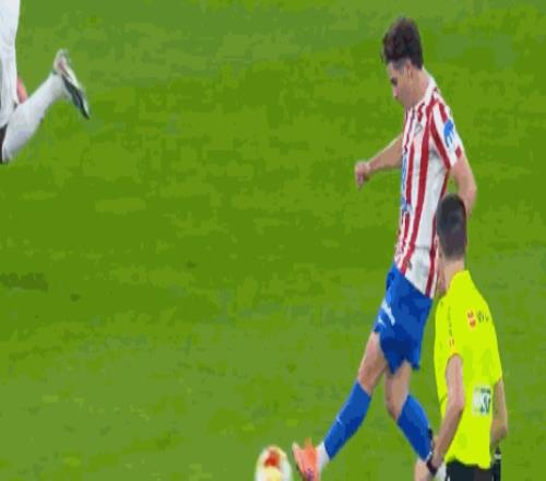 第23分鐘,小西蒙尼禁區內倒地,主裁判沒有判罰