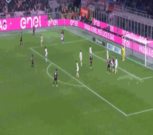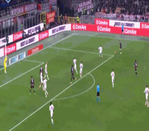 第90+2分鐘,扳平比分,萊奧頭槌完成絕平,米蘭1-1