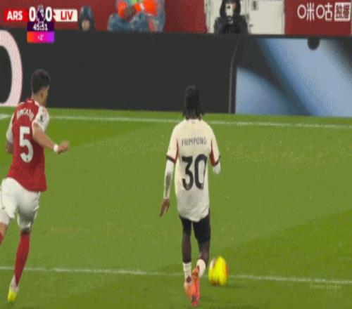 第43分鐘,阿森納默契配合,賴斯凌空打門被沒收