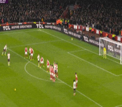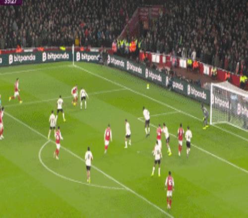 第27分鐘,拉亞出擊將加布里埃爾的回傳球解圍,但沒有踢遠,布拉德利得球直接吊門,這球擊中橫梁彈出。