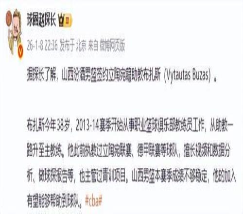 既然外援都做了調(diào)整,那么接下來就要考慮教練組了。潘江的實(shí)力也就那樣了,只能想辦法補(bǔ)充其他人了。這不,根據(jù)球圈趙探長的報(bào)道,山西男籃引入了立陶宛籍助教布扎斯(Vytautas Buzas)。