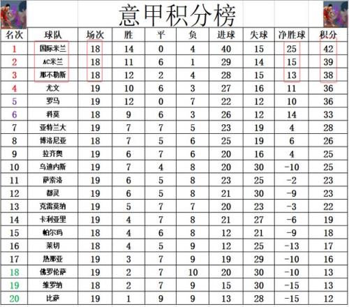 積分榜方面,AC米蘭在主場(chǎng)無力拿下保級(jí)弱旅,這樣的話,他們本輪戰(zhàn)罷落后國米3分,由于國米多AC米蘭10個(gè)凈勝球,基本上國米就提前鎖定了本賽季的半程冠軍。熱那亞無緣絕殺,拿到1分的他們比降級(jí)區(qū)高3分,還是排在倒數(shù)第4。