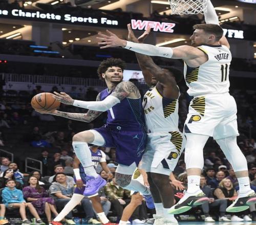進(jìn)入次節(jié),兩隊進(jìn)攻火力均有所回落,單節(jié)得分均未突破30分。比賽伊始,步行者率先發(fā)力,將比分拉開至41-33,隨后進(jìn)一步擴(kuò)大優(yōu)勢至46-36。關(guān)鍵時刻,三球再度扛起進(jìn)攻大旗,引領(lǐng)球隊打出一波16-5的反擊浪潮,成功實(shí)現(xiàn)1分反超。不過步行者迅速調(diào)整狀態(tài),憑借內(nèi)外線的多點(diǎn)開花展開反撲,重新確立60-56的領(lǐng)先優(yōu)勢。之后三球突破上籃命中縮小分差,而西亞卡姆此節(jié)狀態(tài)啞火,4投僅1中僅得3分。反觀三球延續(xù)火熱手感,單節(jié)7投4中再添11分。此節(jié)戰(zhàn)罷,步行者單節(jié)27-28被追回1分,上半場結(jié)束時以60-58微弱領(lǐng)先黃蜂。前兩節(jié)戰(zhàn)罷,步行者三分球13投7中,西亞卡姆12投7中貢獻(xiàn)18分7籃板;黃蜂三分球19投7中,三球12投8中并命中4記三分,斬獲22分。