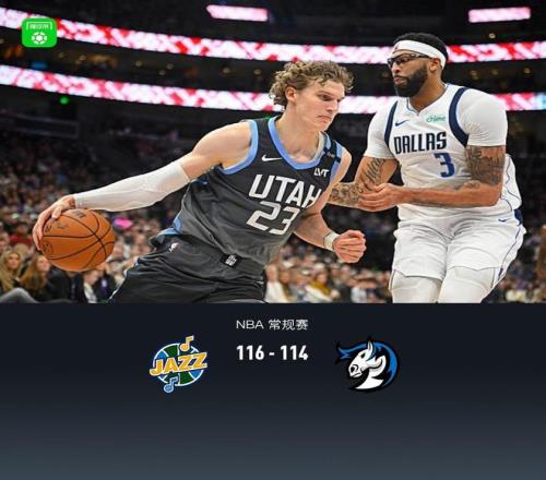 第四節爵士馬爾卡寧拿下10分,獨行俠克萊-湯普森拿下6分,最終爵士116-114戰勝獨行俠