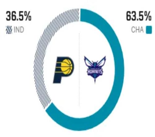 賽前,美媒ESPN對本場比賽進行了勝率預測,步行者勝率僅有36.5%,黃蜂隊勝率則高達63.5%, 對比依舊明顯。